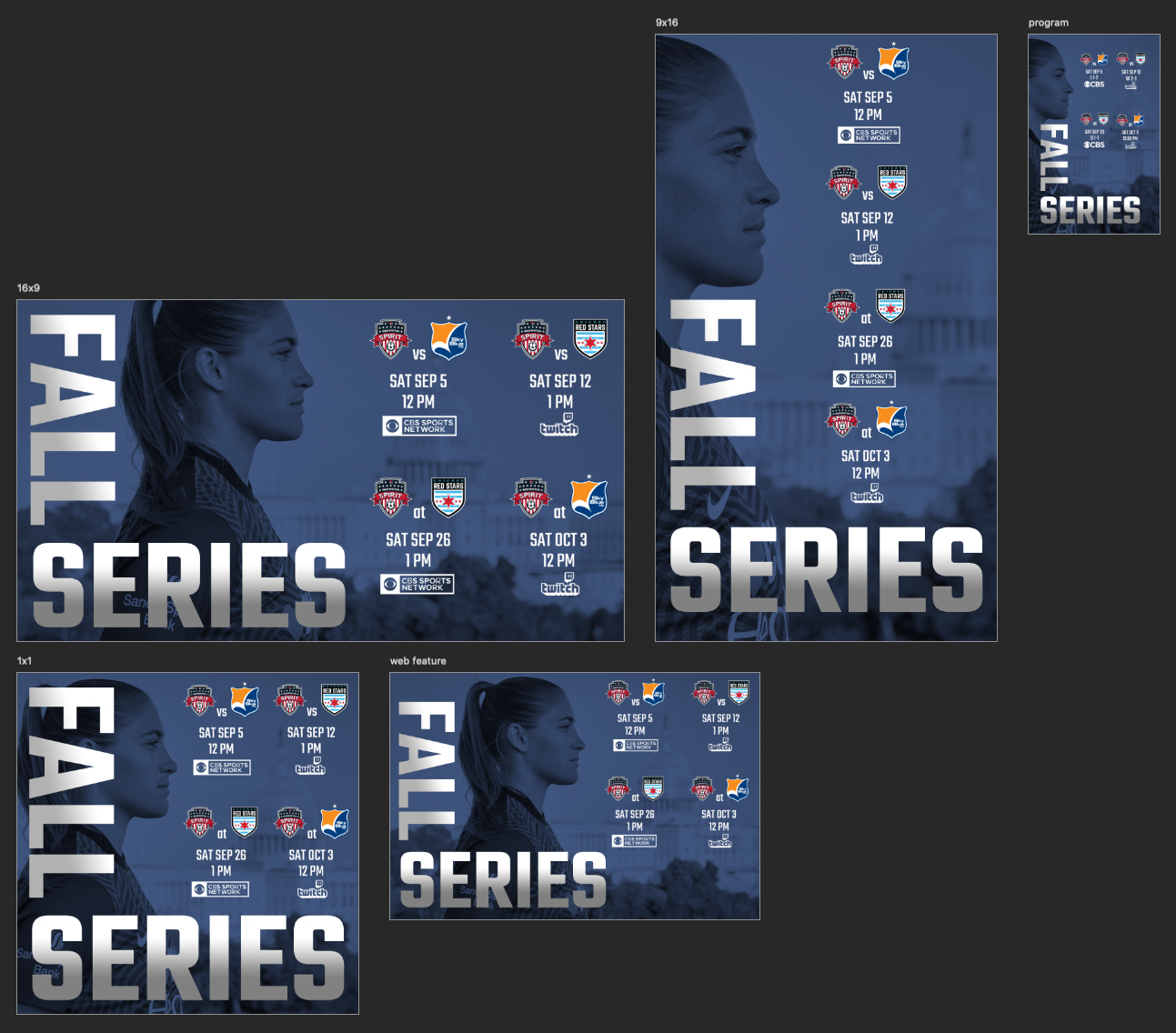 2020 NWSL Fall Series match announcement package for the Washington Spirit.