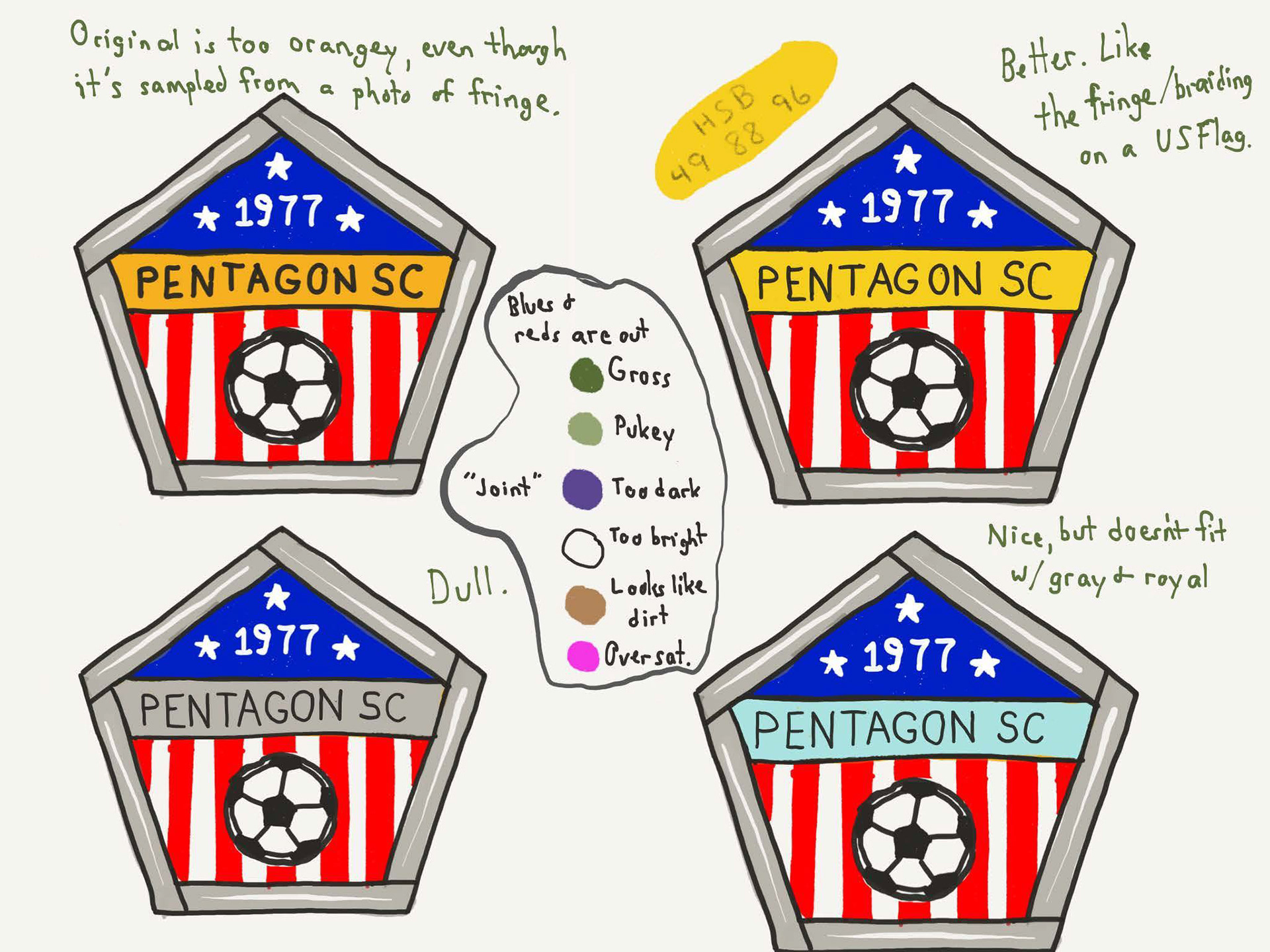 Did some sketching and collaborating with the club to get from the 2003 version (in all its clip arty glory) to a design that was shaped like a Pentagon. However, we ditched that idea because it looked too much like a "challenge coin" and the use of a Pentagon shape felt forced and overdone. After surveying designs from the English Premier League and Spanish La Liga, we settled on a more traditional shape with a modern scroll, and worked the pentagon into the negative space of the ball.
