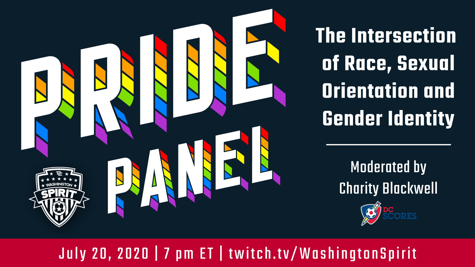Branding package for Pride Month panel sponsored by the Washington Spirit and DC Scores. Package included static and motion graphic placements for social media, web placements, registration graphics, broadcast chyrons and slates.